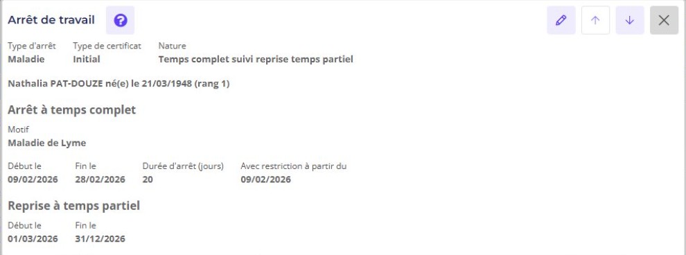 Arret de travail - détail