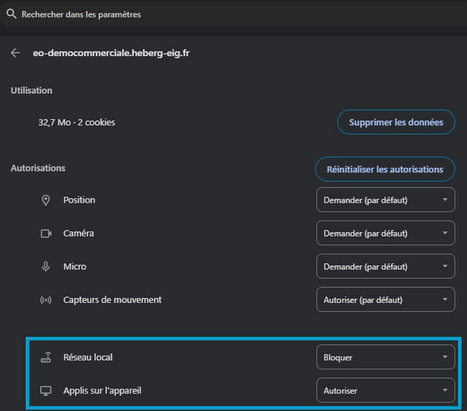 02 - Réseau local et Applis sur l'appareil