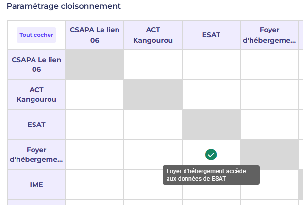 Paramétrage cloisonnement